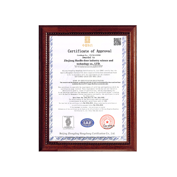 公司一直以來嚴(yán)格執(zhí)行ISO9001質(zhì)量體系和ISO14001環(huán)境管理體系標(biāo)準(zhǔn),建立了完備的科研、開發(fā)、生產(chǎn)、銷售服務(wù)體系。公司是浙江省門業(yè)協(xié)會會員單位,江山門業(yè)協(xié)會理事單位,中國木材與木制品流通協(xié)會會員單位,江山市消防協(xié)會副會長單位。